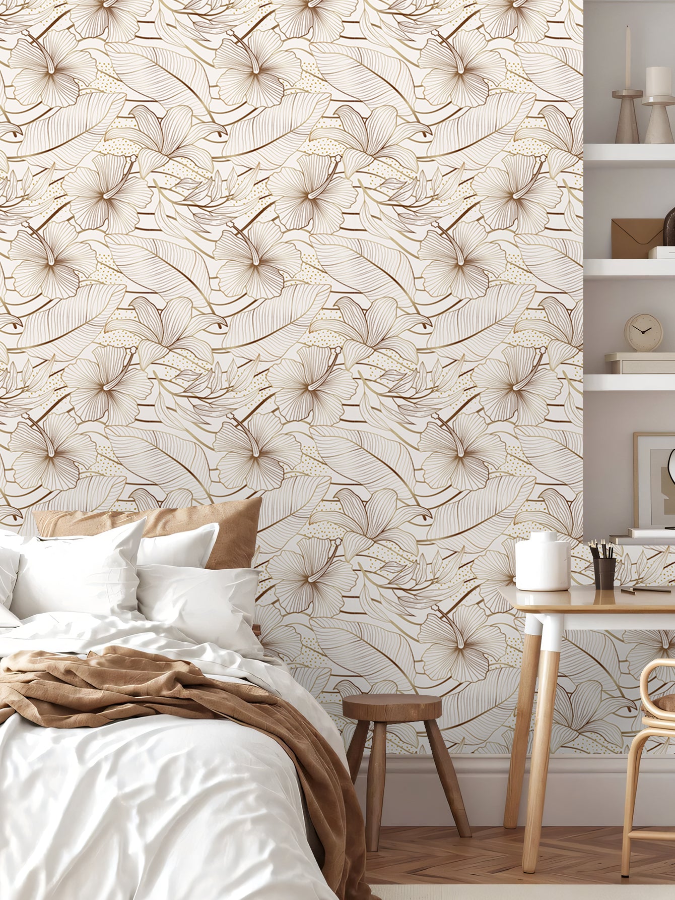 De hoogwaardige print, zachte kleuren en luxe uitstraling maken dit behang geschikt voor elke ruimte: woonkamer, slaapkamer, hal of toilet.