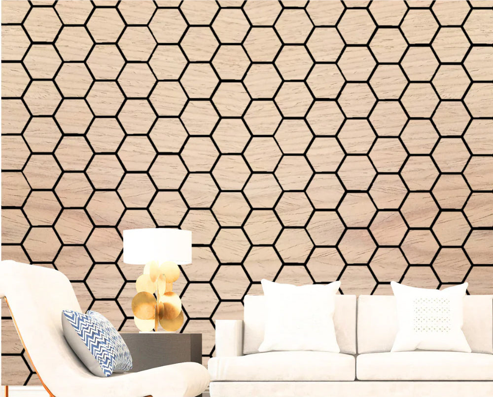 Elke aku hexagon biedt een authentieke houtnerf en tastbare structuur, uniek in elk stuk dankzij echt houtfineer.
